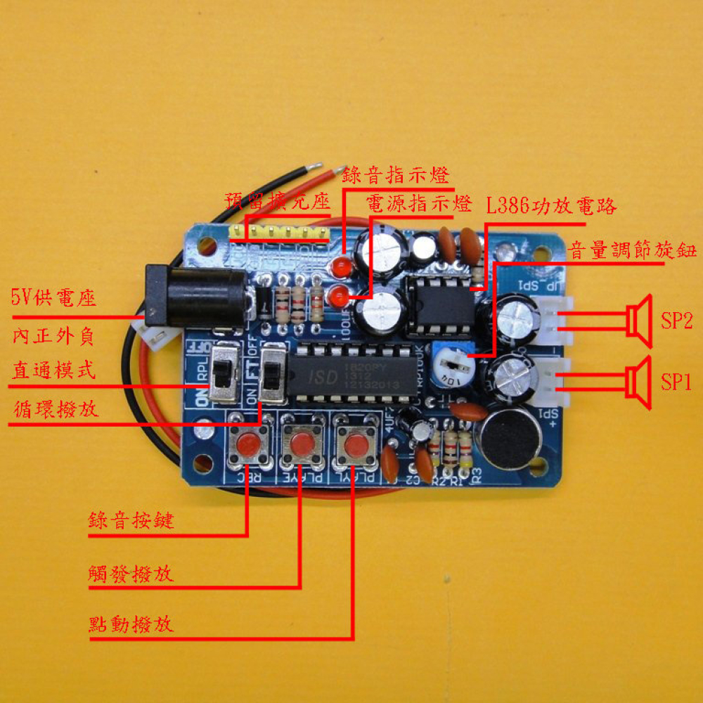 1、板載ISD1820晶片;
