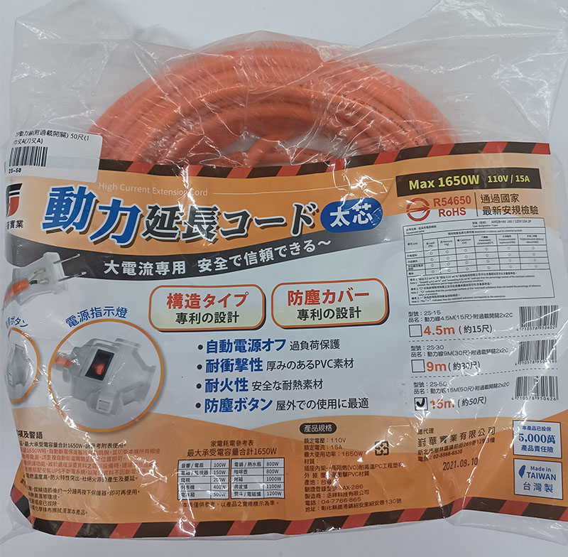 2S-50 2P動力線(附過載開關) 50尺(15M)