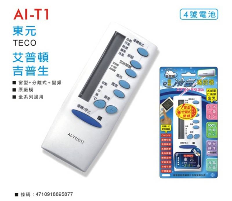 聖岡 TECO東元、艾普頓、吉普生專用冷氣遙控器 (AI-T1)