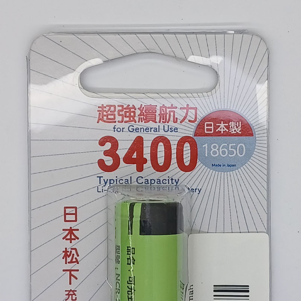 NCR18650B日本松下平頭18650 3400mA充電鋰電池