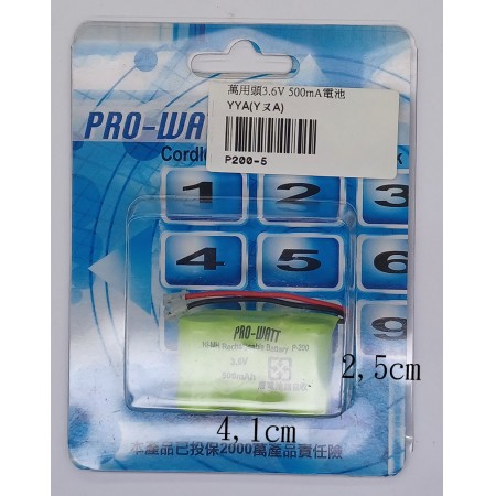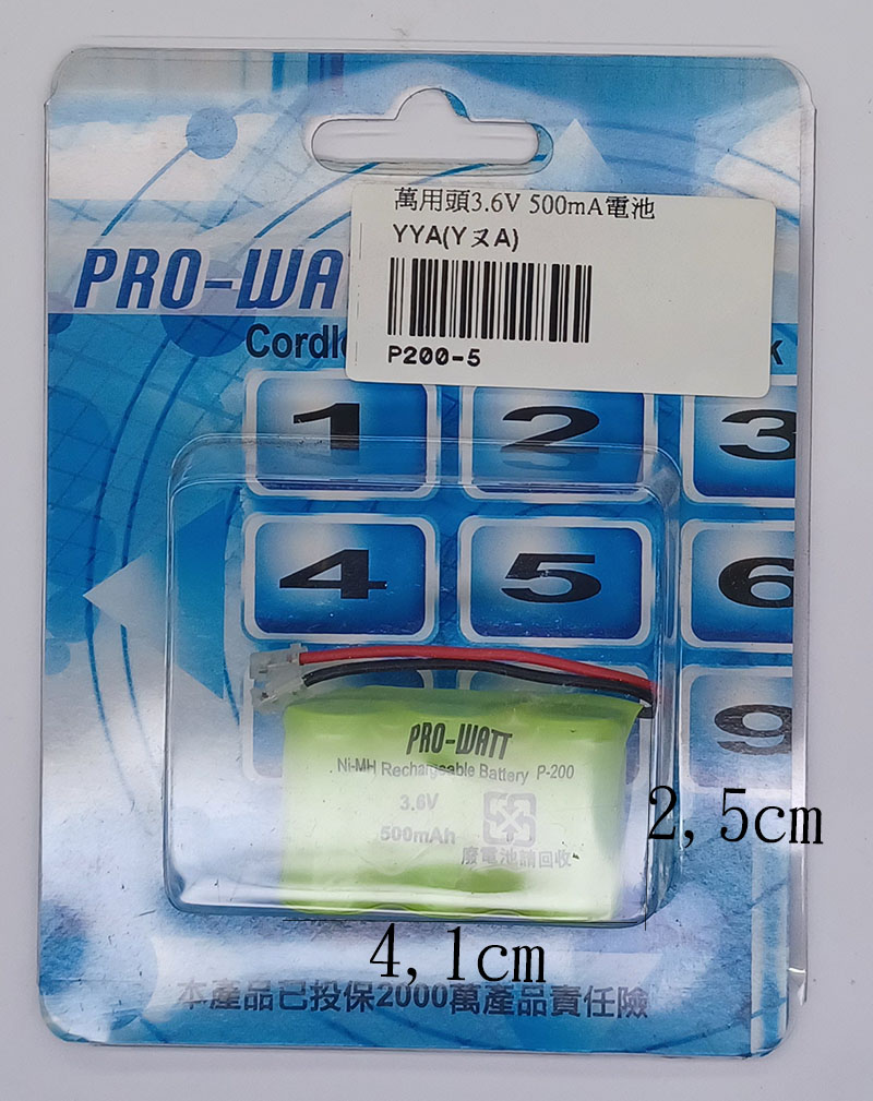 P200-5 3.6V 500mAh 無線電話電池萬用頭